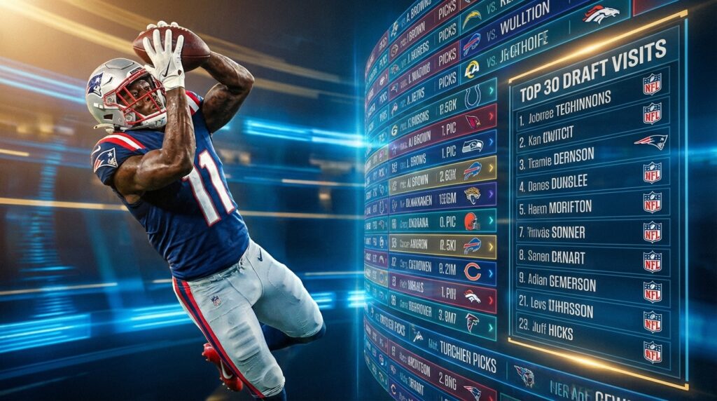 KC Concepcion leads a rising list of prospects drawing NFL Draft Visits attention. He has eight top-30 pre-draft visits scheduled so far. The known hosts include the San Francisco 49ers, Buffalo Bills, Denver Broncos, Miami Dolphins, New York Giants, Carolina Panthers, New England Patriots, and Tennessee Titans. These eight top-30 visits signal broad interest across systems.