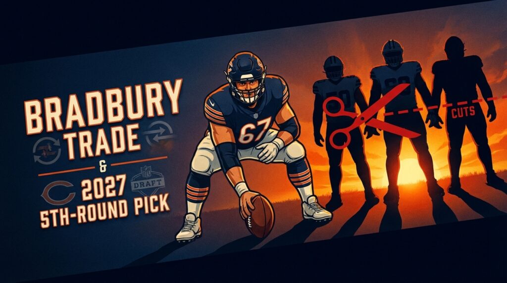 The trade has ripple effects across the offensive line. Joe Thuney now reunites with Bradbury in Chicago, and that removes any continuity at center for the Patriots. Consequently, New England may target veterans like Connor McGovern or Lloyd Cushenberry, or draft a Day 2 center to develop. Moreover, the move impacts guard plans and roster flexibility because the team must balance cap space and depth.