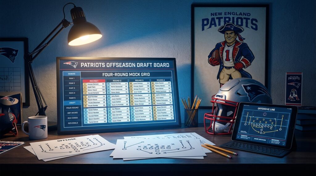 The combine numbers matter because the Patriots need both starters and depth. For example, Pregnon’s 10-yard split and Miller’s three-cone time change how the board falls. As a result mock drafts shift toward linemen when those drills validate tape. Moreover teams that value durability will trade into a pick if a top OLine athlete slips. This reality shapes our four-round mock draft.