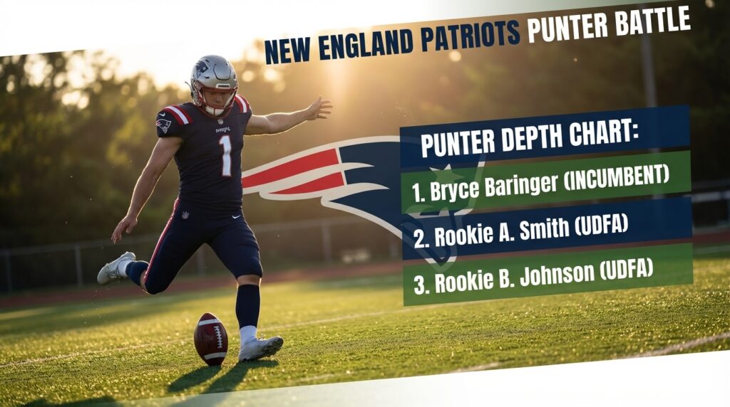 Patriots punter replacement scenarios deserve close attention this offseason. Because special teams were a priority in 2025, small changes can matter. However, even established starters face pressure. Rookies like Brett Thorson and Ryan Eckley could push veterans. This introduction previews depth-chart shakeups where overlooked starters might lose spots to rookie prospects.