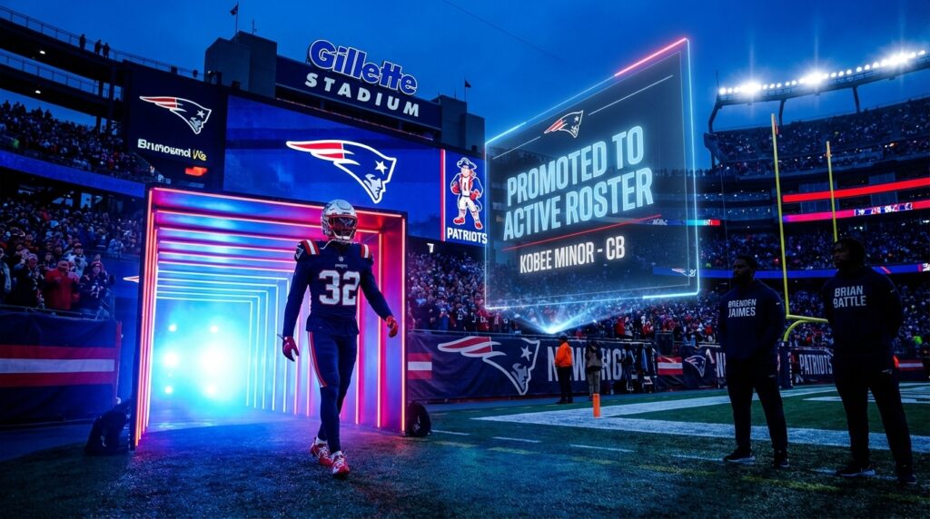 The New England Patriots gave Kobee Minor a clear vote of confidence this week. “The New England Patriots announced they promoted CB Kobee Minor from the practice squad to the active roster.” This promotion is one of the team’s recent Patriots roster moves that shifts depth in the secondary.
